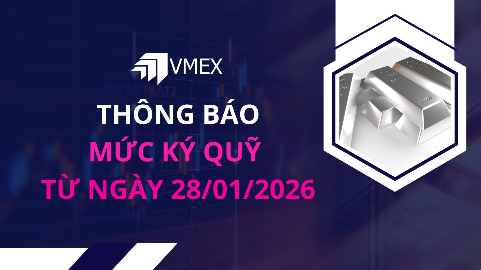 Kính gửi: Quý khách hàng, Công ty cổ phần giao dịch hàng hoá VMEX gởi tới quý khách hàng, mức ký quỹ giao dịch hàng hóa tại MXV do Sở giao dịch hàng hoá Việt Nam ban hành, áp dụng từ phiên giao dịch ngày 29/01/2026 Thông tin chi tiết
