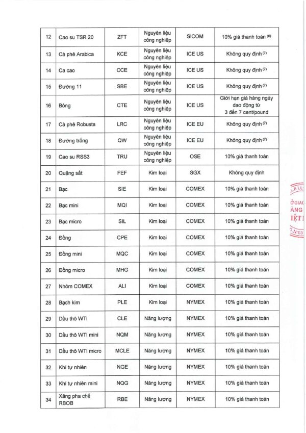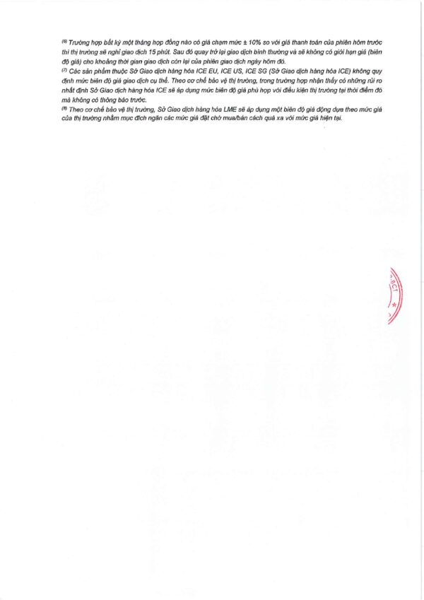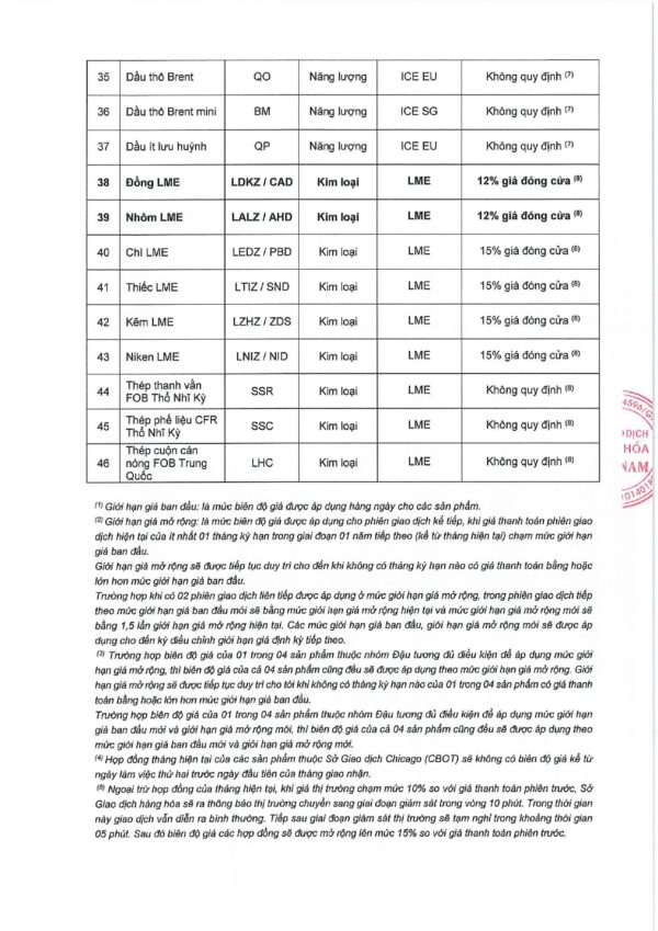 Lưu ý : Biên độ giá giao dịch của Hợp đồng Kỳ hạn tiêu chuẩn hàng hóa tại MXV