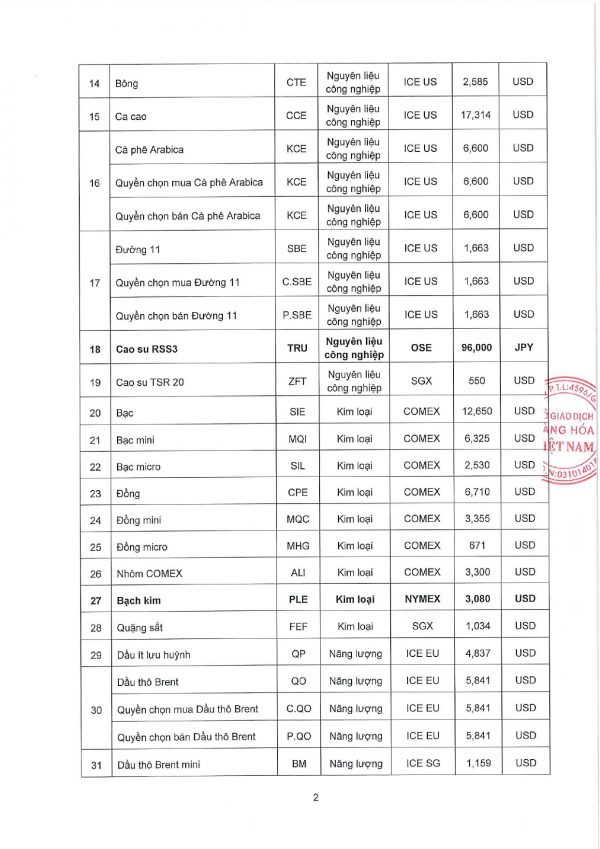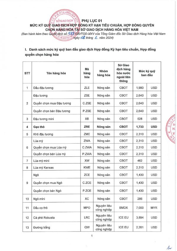 Công ty cổ phần giao dịch hàng hoá VMEX gởi tới quý khách hàng, mức ký quỹ giao dịch hàng hóa tại MXV do Sở giao dịch hàng hoá Việt Nam ban hành, áp dụng từ phiên giao dịch ngày 01/07/2024