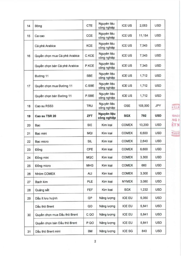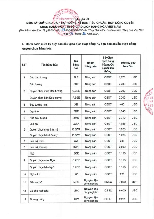 Công ty cổ phần giao dịch hàng hoá VMEX gởi tới quý khách hàng, mức ký quỹ giao dịch hàng hóa tại MXV do Sở giao dịch hàng hoá Việt Nam ban hành, áp dụng từ phiên giao dịch ngày 01/11/2024