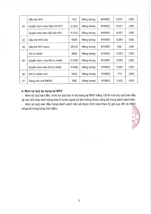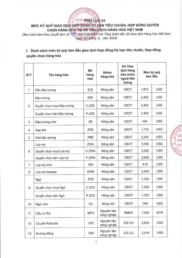 Công ty cổ phần giao dịch hàng hoá VMEX gởi tới quý khách hàng, mức ký quỹ giao dịch hàng hóa tại MXV do Sở giao dịch hàng hoá Việt Nam ban hành, áp dụng từ phiên giao dịch ngày 02/09/2024