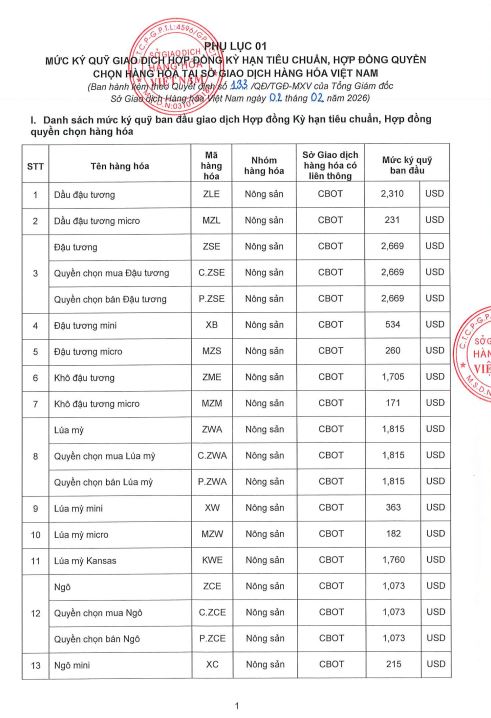 Công ty cổ phần giao dịch hàng hoá VMEX gởi tới quý khách hàng, mức ký quỹ giao dịch hàng hóa tại MXV do Sở giao dịch hàng hoá Việt Nam ban hành, áp dụng từ phiên giao dịch ngày 03/02/2026