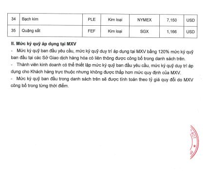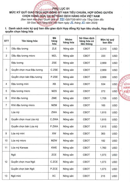 Công ty cổ phần giao dịch hàng hoá VMEX gởi tới quý khách hàng, mức ký quỹ giao dịch hàng hóa tại MXV do Sở giao dịch hàng hoá Việt Nam ban hành, áp dụng từ phiên giao dịch ngày 03/11/2025