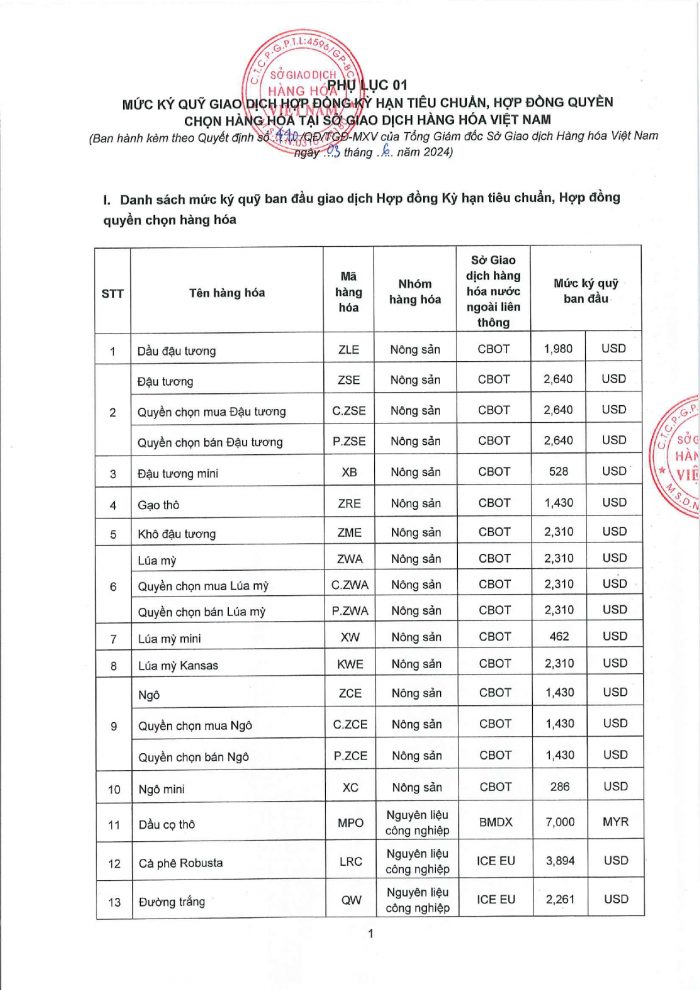 Công ty cổ phần giao dịch hàng hoá VMEX gởi tới quý khách hàng, mức ký quỹ giao dịch hàng hóa tại MXV do Sở giao dịch hàng hoá Việt Nam ban hành, áp dụng từ phiên giao dịch ngày 04/06/2024