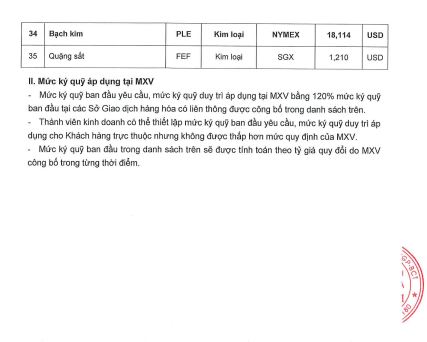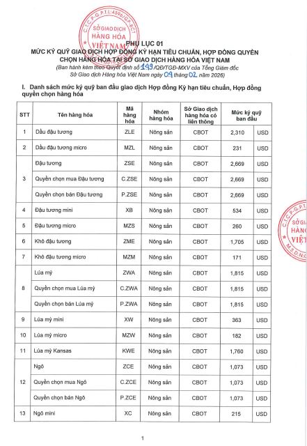 Công ty cổ phần giao dịch hàng hoá VMEX gởi tới quý khách hàng, mức ký quỹ giao dịch hàng hóa tại MXV do Sở giao dịch hàng hoá Việt Nam ban hành, áp dụng từ phiên giao dịch ngày 05/02/2026