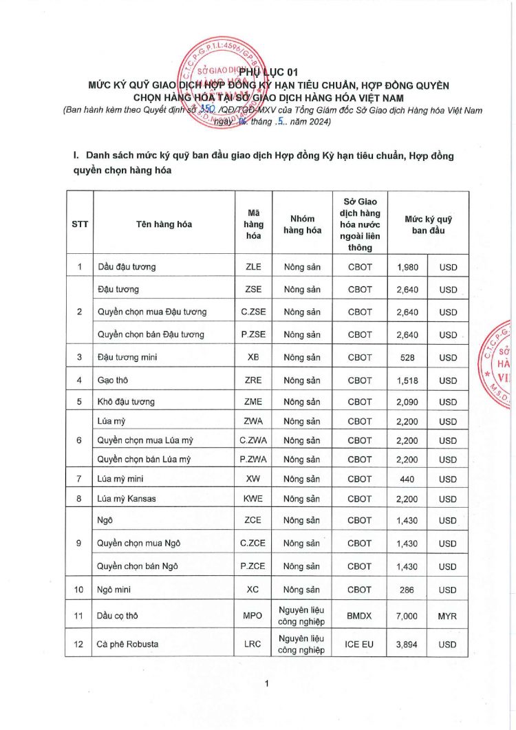 Công ty cổ phần giao dịch hàng hoá VMEX gởi tới quý khách hàng, mức ký quỹ giao dịch hàng hóa tại MXV do Sở giao dịch hàng hoá Việt Nam ban hành, áp dụng từ phiên giao dịch ngày 07/05/2024