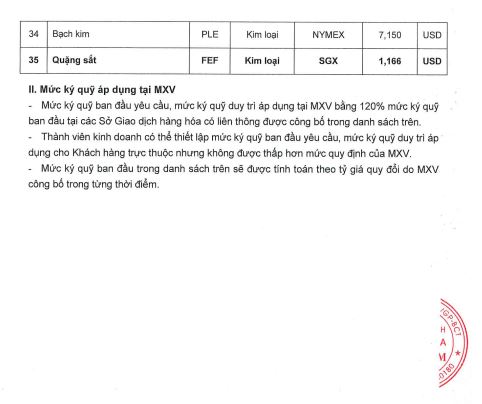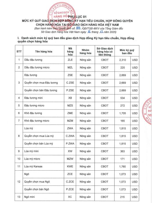 Công ty cổ phần giao dịch hàng hoá VMEX gởi tới quý khách hàng, mức ký quỹ giao dịch hàng hóa tại MXV do Sở giao dịch hàng hoá Việt Nam ban hành, áp dụng từ phiên giao dịch ngày 12/12/2025