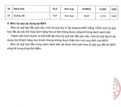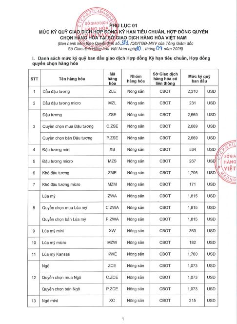 Công ty cổ phần giao dịch hàng hoá VMEX gởi tới quý khách hàng, mức ký quỹ giao dịch hàng hóa tại MXV do Sở giao dịch hàng hoá Việt Nam ban hành, áp dụng từ phiên giao dịch ngày 13/04/2026