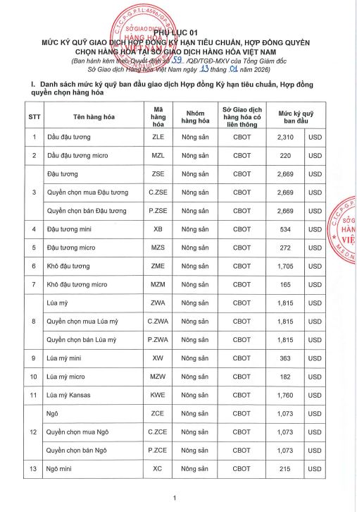 Công ty cổ phần giao dịch hàng hoá VMEX gởi tới quý khách hàng, mức ký quỹ giao dịch hàng hóa tại MXV do Sở giao dịch hàng hoá Việt Nam ban hành, áp dụng từ phiên giao dịch ngày 14/01/2026