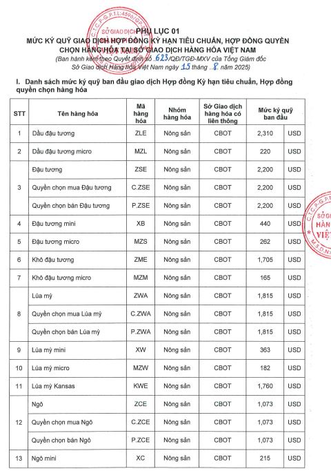 Công ty cổ phần giao dịch hàng hoá VMEX gởi tới quý khách hàng, mức ký quỹ giao dịch hàng hóa tại MXV do Sở giao dịch hàng hoá Việt Nam ban hành, áp dụng từ phiên giao dịch ngày 18/08/2025