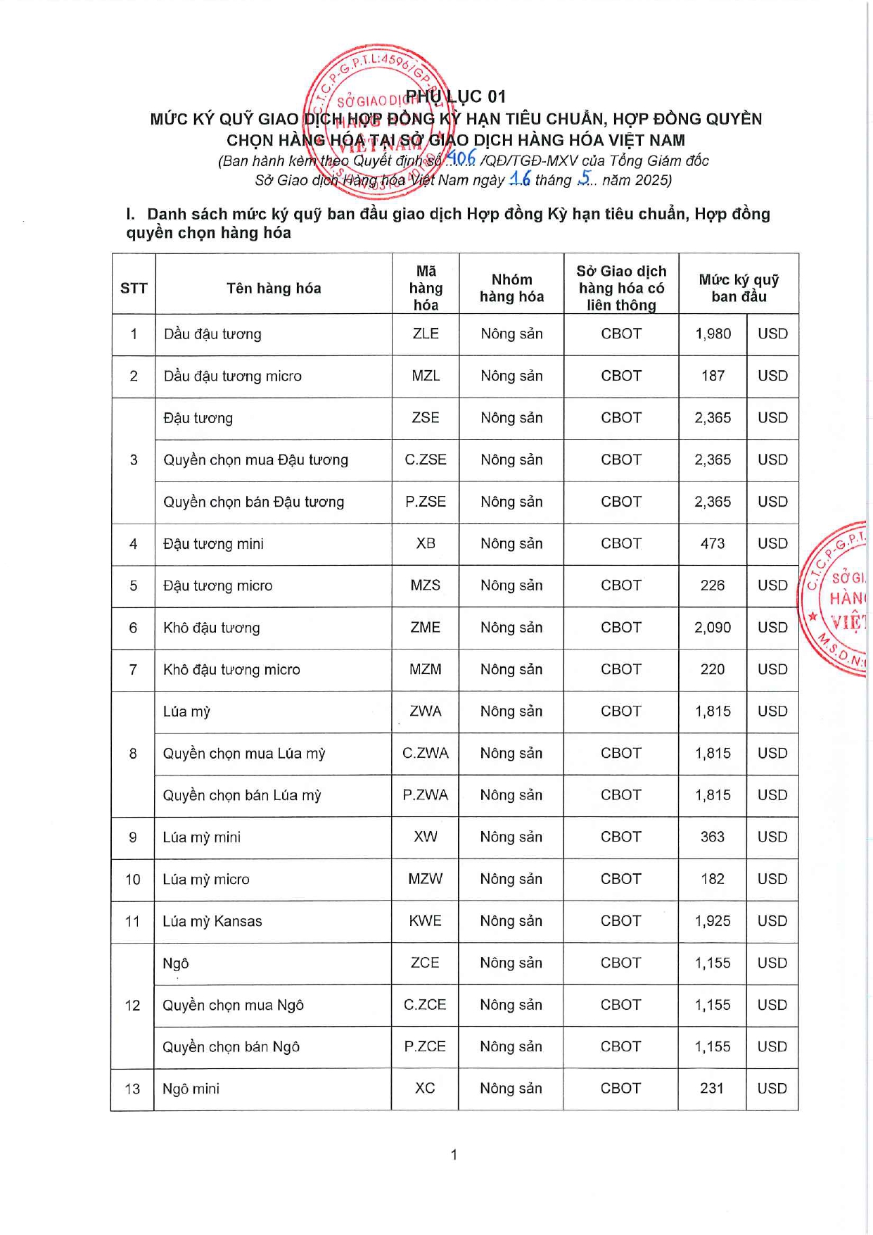 Công ty cổ phần giao dịch hàng hoá VMEX gởi tới quý khách hàng, mức ký quỹ giao dịch hàng hóa tại MXV do Sở giao dịch hàng hoá Việt Nam ban hành, áp dụng từ phiên giao dịch ngày 19/05/2025