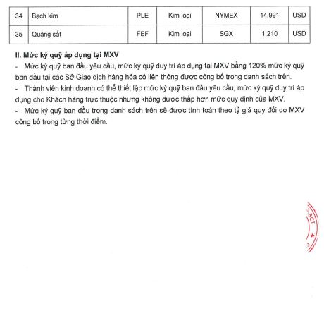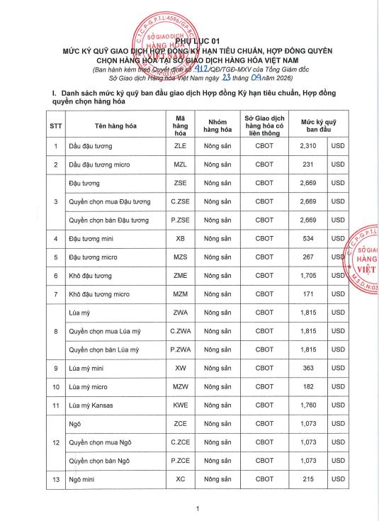 Công ty cổ phần giao dịch hàng hoá VMEX gởi tới quý khách hàng, mức ký quỹ giao dịch hàng hóa tại MXV do Sở giao dịch hàng hoá Việt Nam ban hành, áp dụng từ phiên giao dịch ngày 24/04/2026