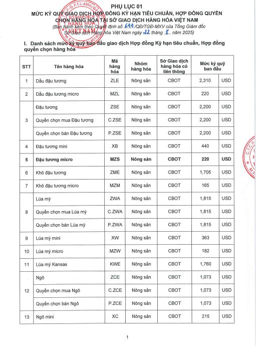 Công ty cổ phần giao dịch hàng hoá VMEX gởi tới quý khách hàng, mức ký quỹ giao dịch hàng hóa tại MXV do Sở giao dịch hàng hoá Việt Nam ban hành, áp dụng từ phiên giao dịch ngày 25/08/2025