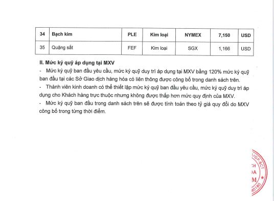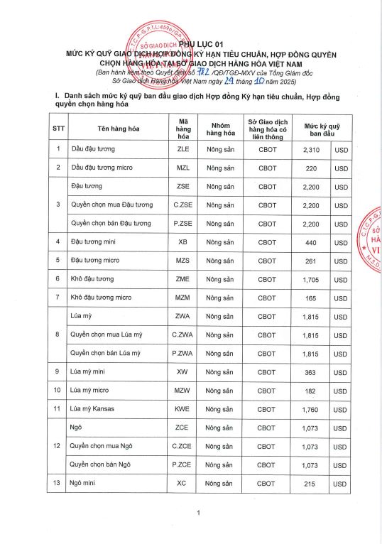 Công ty cổ phần giao dịch hàng hoá VMEX gởi tới quý khách hàng, mức ký quỹ giao dịch hàng hóa tại MXV do Sở giao dịch hàng hoá Việt Nam ban hành, áp dụng từ phiên giao dịch ngày 27/10/2025