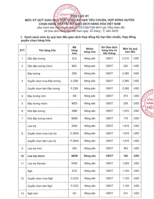 Công ty cổ phần giao dịch hàng hoá VMEX gởi tới quý khách hàng, mức ký quỹ giao dịch hàng hóa tại MXV do Sở giao dịch hàng hoá Việt Nam ban hành, áp dụng từ phiên giao dịch ngày 28/07/2025