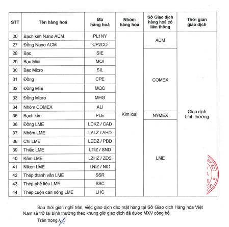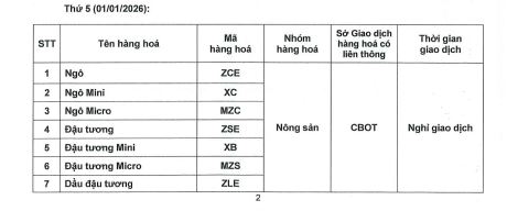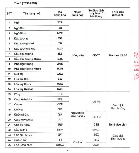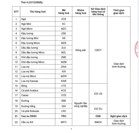 Căn cứ Lịch nghỉ giao dịch ngày 31/12/2025-02/01/2026 các sản phẩm thuộc các Sở giao dịch hàng hóa nước có liên thông với MXV, VMEX xin thông báo:
