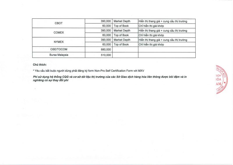 Sở Giao dịch Hàng hóa Việt Nam (MXV) gửi tới Quý Thành viên Quyết định số 101/QĐ/TGĐ-MXV về việc Mức phí sử dụng Cơ sở dữ liệu khi giao dịch hàng hóa thông qua hệ thống CQG được áp dụng từ 01/03/2024 cho đến khi có thông báo mới.